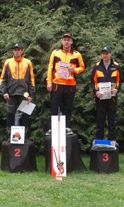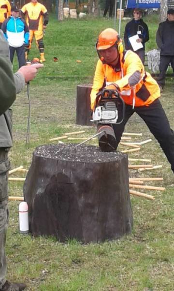 Tomáš Kvasničák: ťažba 5.miesto, výmena reťaze 6.miesto, kombinovaný rez 3. miesto, presný rez 33.miesto, odvetvovanie 1.miesto