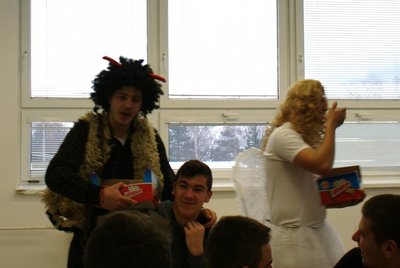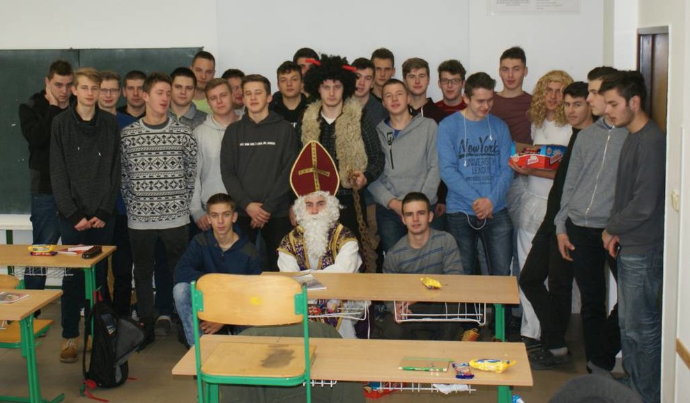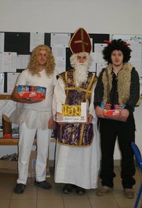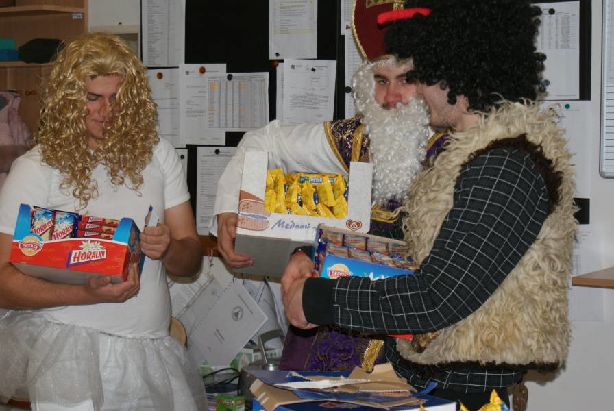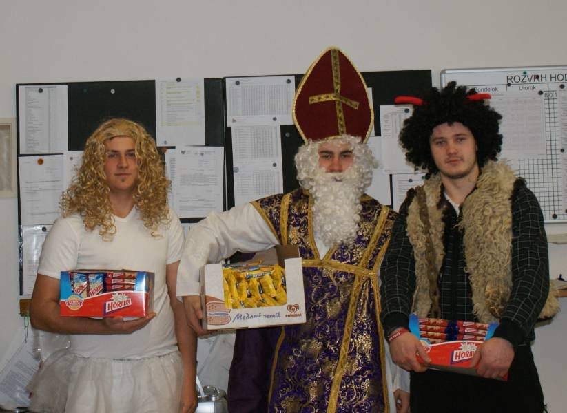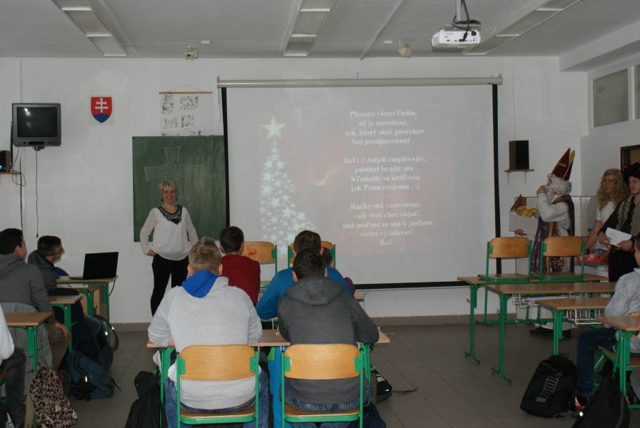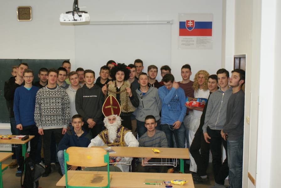 Ďakujeme našim študentom z 3.C triedy: Matúšovi Juritkovi, Róbert Bielakovi a Patrikovi Graňákovi za to, že sa tak perfektne zhostili tejto úlohy a nám všetkým tak spríjemnili deň, zdôraznili ľudský rozmer tohto sviatku a naladili nás na predvianočnú náladu.