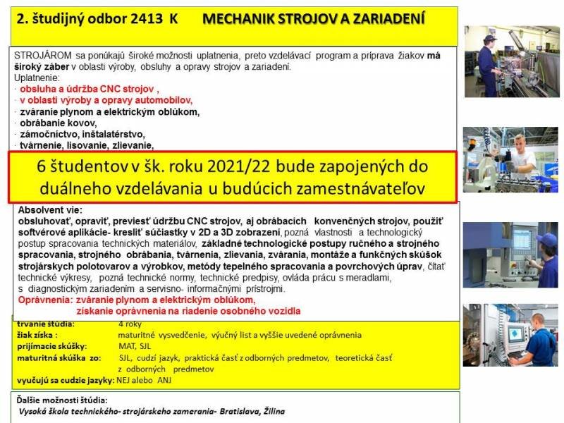 v školskom roku 2021/22 bude 12 žiakov zapojených do duálneho vzdelávania