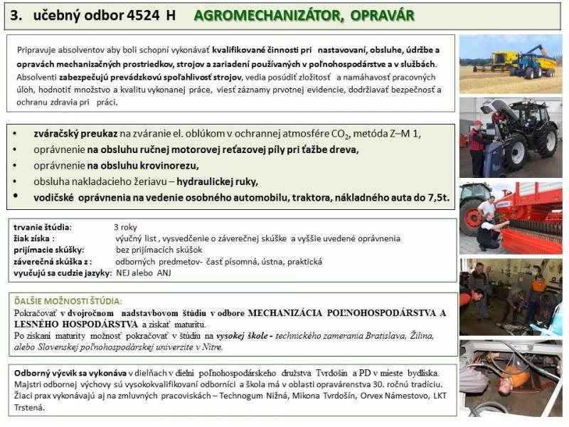 6 žiakov v študijnom odbore mechanizácia poľnohospodárstva