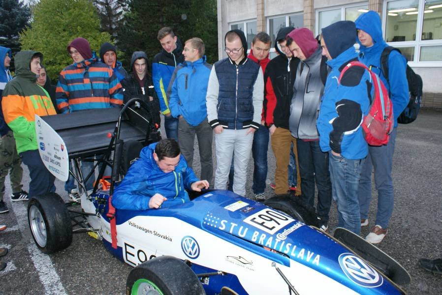 Dňa 20. 10. 2015 sme sa s triedami 2.B a 3.B zúčastnili prezetácie študentov Strojníckej fakulty STU Bratislava. Pri prezentácií sme mali možnosť vidieť elektrickú formulu, ktorú skoštruovali študenti tejto fakulty. Po ukážke sa v telocvični Spojenej školy v Tvrdošíne uskutočnila prezentácia Strojníckej fakulty STU s cieľom zvýšiť záujem študentov o štúdium na tejto univerzite a priblížiť im možnosti akreditovaného štúdia. Na záver prebehla súťaž družstiev, ktorá spočívala v montáži a demontáži jednoduchých strojných zariadení. Súťaže sa zúčastnili aj žiaci z našej školy.